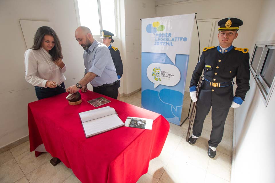 El programa Poder Legislativo Juvenil fue sancionado bajo la Ley N° 2982- A, autoría del diputado Hugo Domínguez, y contó con el acompañamiento del Ministerio de Educación provincial. Entregaron copia de la resolución alusiva los diputados Nadia García Amud, Andrea Charole, Carina Batalla, Ricardo Sánchez y Alejandro Aradas; y el director de la Regional Educativa XII, Joaquín Gómez.