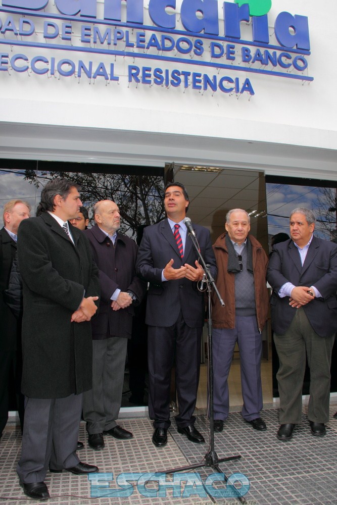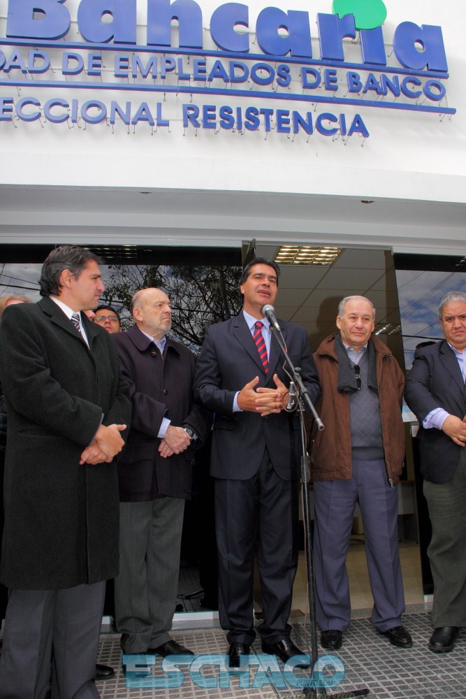 Al inaugurar las remozadas instalaciones de la sede gremial el gobernador destacó la lucha permanente de la Asociación Bancaria en la defensa legítima de los intereses de la provincia del Chaco.