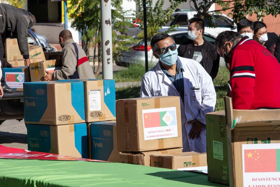 Gustavo Martínez junto a supercadista chinos entregó una donación de mil trajes de bioseguridad