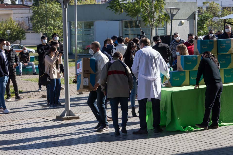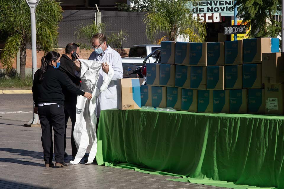 El Intendente de Resistencia, Gustavo Martínez, funcionarios municipales y ediles entregaron una donación de trajes de protección para el personal de salud, que fue realizada por representantes de 14 supermercados chinos de Resistencia. Los equipos serán utilizados por trabajadores del hospital Perrando, Pediátrico y los centros de salud con atención las 24 horas, de Villa Libertad y Villa Río Negro