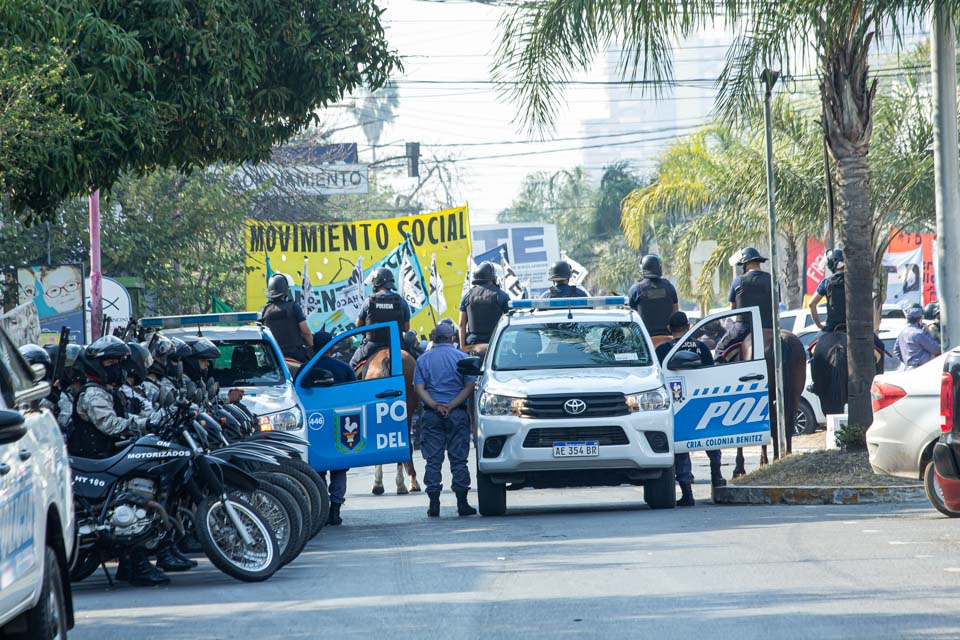 Tras los incidentes de este miércoles, informa 3500noticias en los que un escuadrón de infantería de la policía provincial dispersó una protesta en el microcentro de la ciudad, arrestó a los dirigentes del MTH Carlos Barraza y Gustavo Garibaldi, y un policía agredió a la subsecretaria de Derechos Humanos de la Provincia, Nayla Bosch, el arco político no oficialista, el sindicalismo, movimientos piqueteros y organismos de derechos humanos anunciaron una marcha para este jueves.