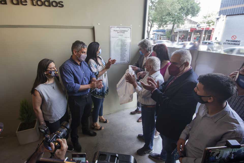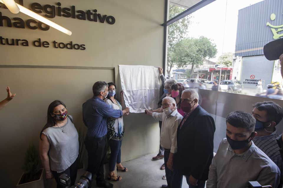 Luego del descubrimiento de una placa conmemorativa, Sager repasó: “Esta es la formalización de un proceso que se inició en plena pandemia, producto de una situación que data de hace más de 25 años, tiempo durante el cual la Legislatura utilizó tres pisos del Banco del Chaco para ser ocupados por los legisladores y sus equipos de trabajo. Había que resolver esa situación en un momento complejo y por lo tanto tuvimos que contar con el apoyo y la comprensión de los diputados y los trabajadores. Así surgió una primera etapa, en la cual nos trasladamos a las oficinas de Pueyrredón 99, las que durante muchos años ocupó Anses. Allí empezó a trabajar la parte parlamentaria y restaba liberar el cuarto y quinto piso del Banco del Chaco”.