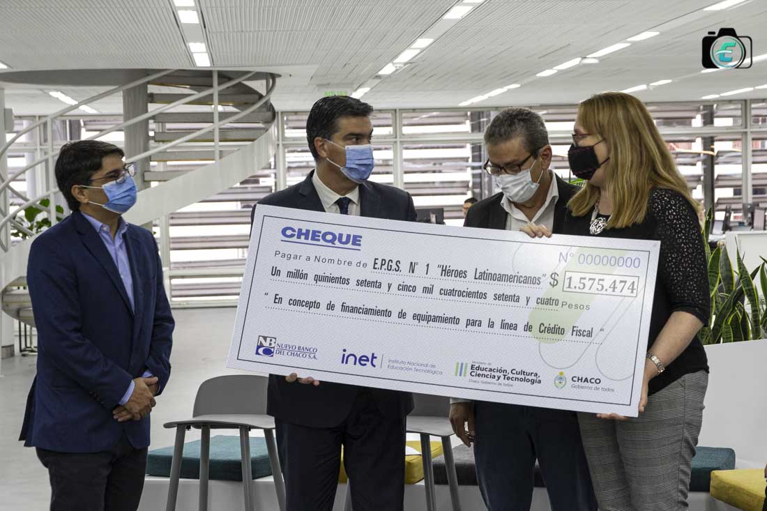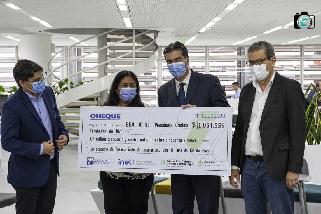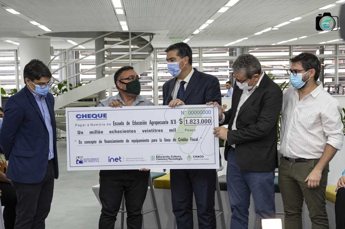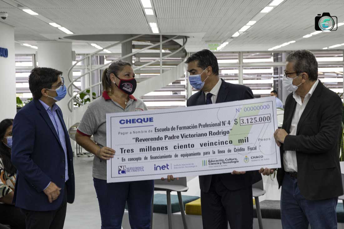 El gobernador Jorge Capitanich entregó este miércoles nueve cheques a escuelas técnicas destinados a proyectos patrocinados por el Nuevo Banco del Chaco. “Esta es una plataforma para continuar trabajando en el desarrollo productivo y en la formación técnica de nuestros trabajadores actuales y futuros”, destacó el gobernador.