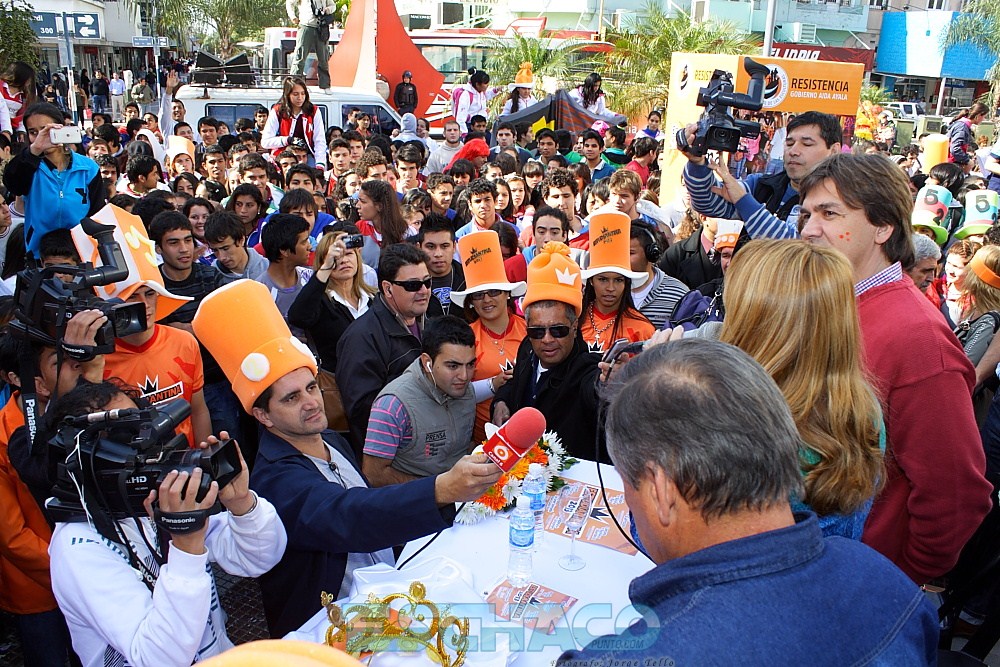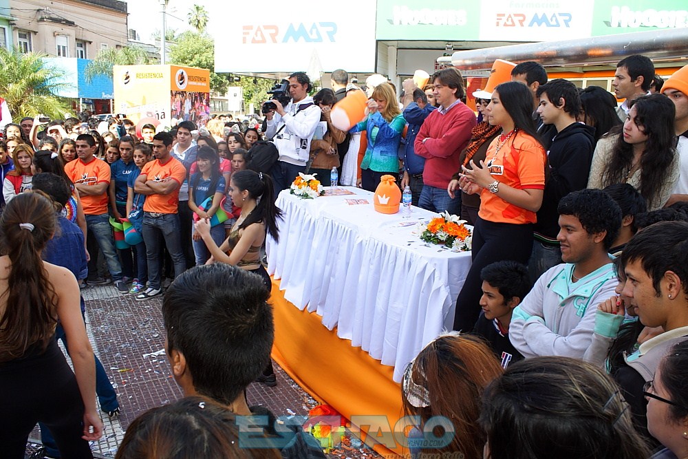 La intendenta Aída Ayala realizó el lanzamiento oficial del evento más esperado por los jóvenes de la capital chaqueña: la Estudiantina 2013. Ante una Peatonal “Doctor Raúl Alfonsín” colmada de alumnos de distintos colegios secundarios, la mandataria anunció las tradicionales actividades que comenzarán este sábado 7 de septiembre con la elección de Rey y Reina de los estudiantes, y finalizarán (luego del ansiado desfile de carrozas) con la Estudiantina del 21 de septiembre en el Parque 2 de Febrero, donde una institución educativa será la afortunada de lograr el viaje a Villa Carlos Paz para toda una división y el broche de oro quedará a cargo del cantante popular Nolberto y Alkalá.