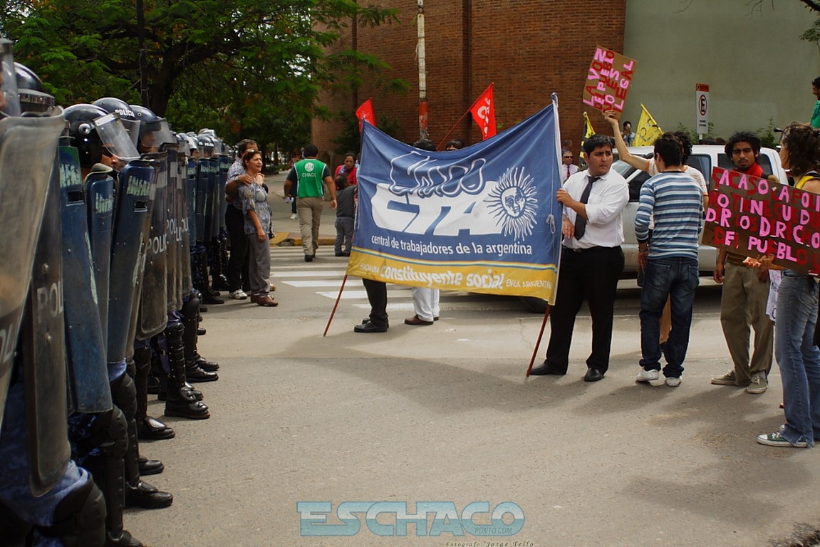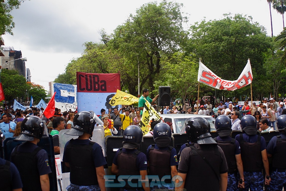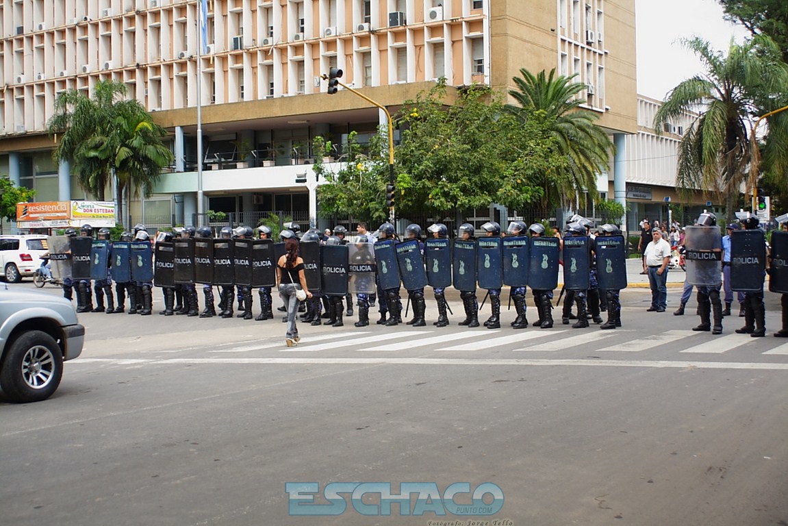 La multisectorial chaqueña marchó por las calles de Resistencia y se apostó frente a la Casa de Gobierno pidiendo una bonificación de 2.000 pesos para los trabajadores por única vez y que Juan Carlos Bacileff abra el diálogo. Un cordón policial protegía la casa del Ejecutivo, mientras el gobernador en ejercicio, daba su primera conferencia informando que no tolerará cortes de rutas y calles.