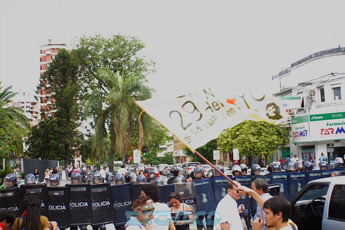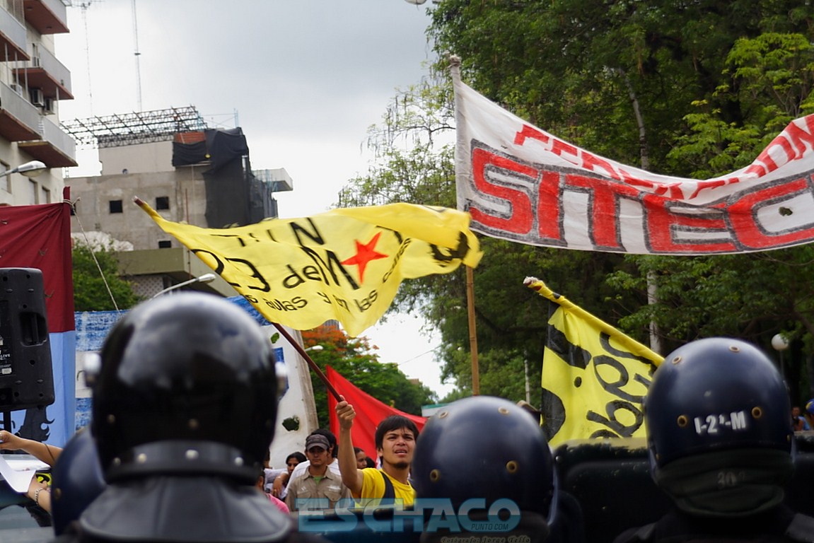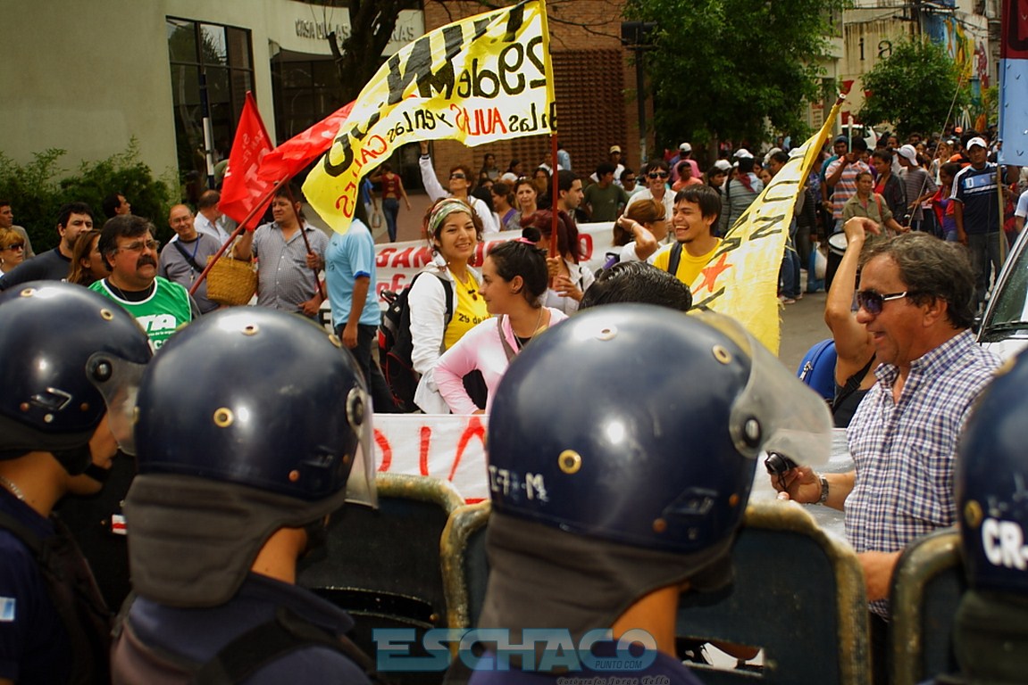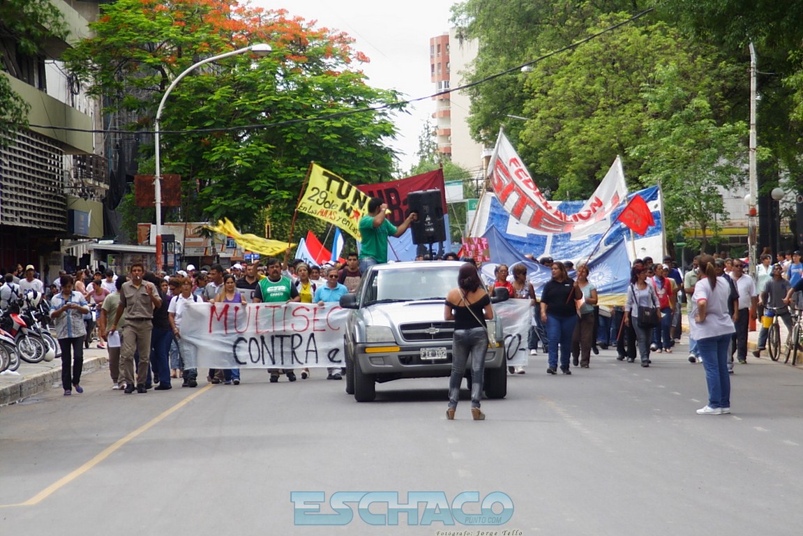 La multisectorial chaqueña marchó por las calles de Resistencia y se apostó frente a la Casa de Gobierno pidiendo una bonificación de 2.000 pesos para los trabajadores por única vez y que Juan Carlos Bacileff abra el diálogo. Un cordón policial protegía la casa del Ejecutivo, mientras el gobernador en ejercicio, daba su primera conferencia informando que no tolerará cortes de rutas y calles.