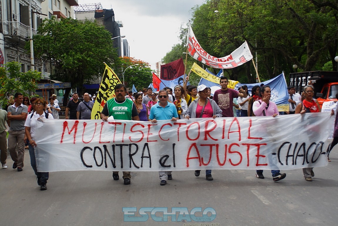 La jornada de protesta nacional, convocada por la CTA de Pablo Michelli, comenzó a las 9 en Resistencia, cuando los movimientos sociales y algunas organizaciones se reunieron en la Plaza 15 de Mayo. Las banderas reunían a la CTA Chaco; Federación Sitech; la Asociación Judicial del Chaco; el MDT 17 de julio y ATE Legislativos entre otros.