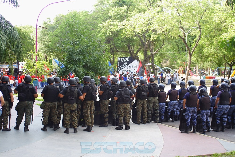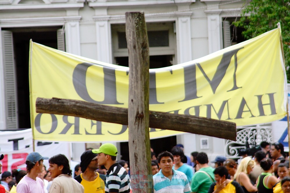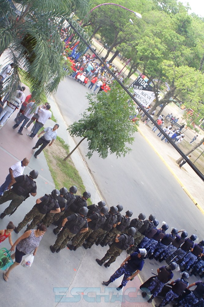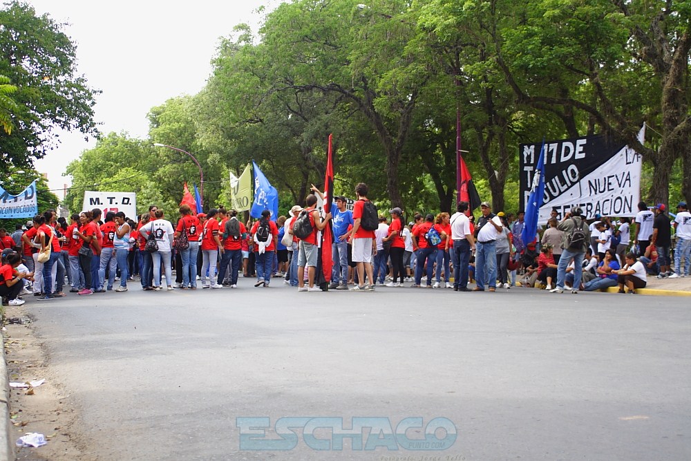 Cada movimiento decidió a su manera pedir que el Poder Ejecutivo se haga cargo de la “represión” que sufrieron. Uno de ellos fue Alberto “Tito” López, quien al frente del MTD 17 de Julio decidió instalarse en la intersección de la Avenida 25 de Mayo y Mitre con su agrupación. Desde allí se acercó hasta el cordón policial que se desplegó frente a la Casa de las Culturas y optó por encarar de frente a los uniformados: “Ustedes más de una vez vinieron hacia nosotros con su familia para pedir un bolsón de comida y siempre son los principales en desacatar cualquier orden, son los que tienen que decir basta”, se lo escuchó decirles.