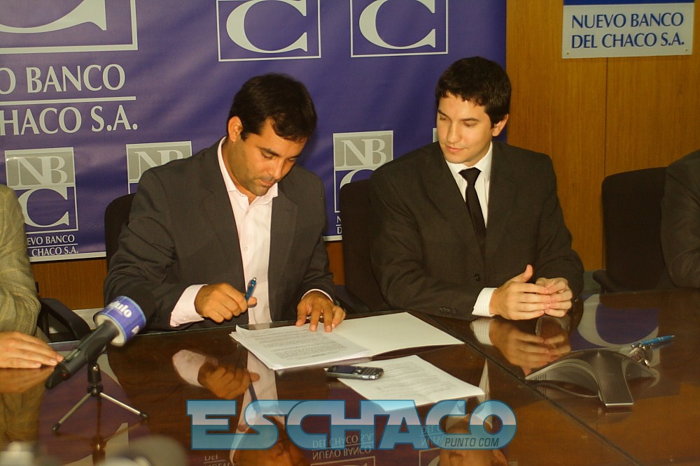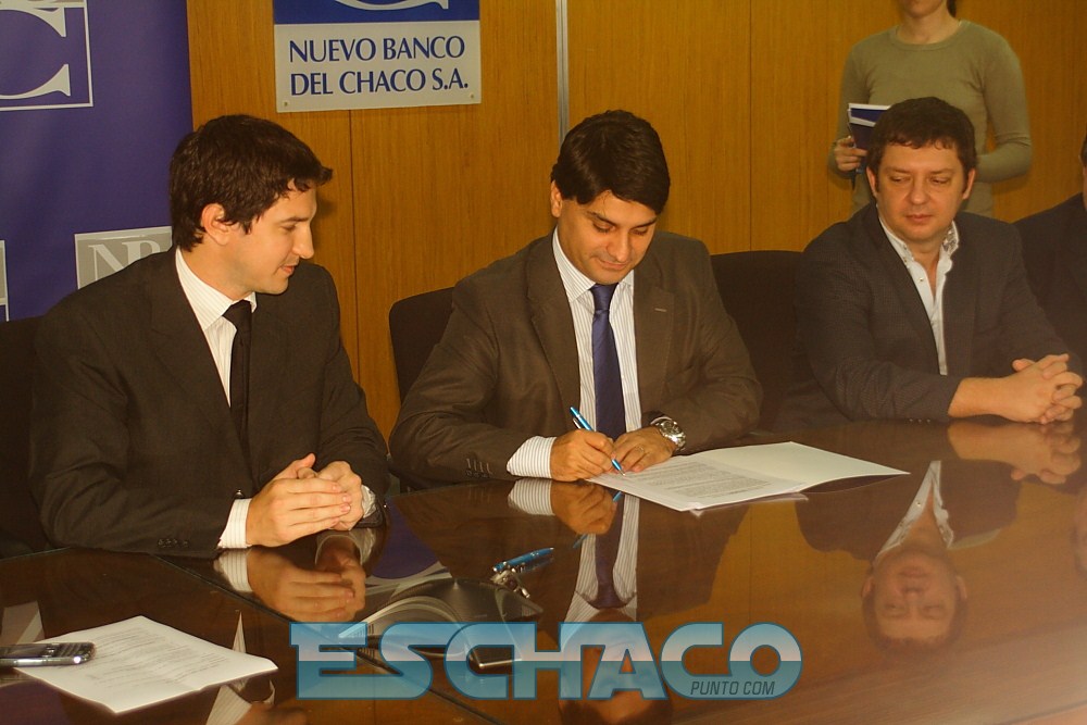 La firma fue encabezada por el presidente del NBCH, Diego Arévalo, junto a los ministros de Industria, Sebastián Lifton, y Hacienda y Finanzas Públicas, Federico Muñoz Femenía, el presidente de la Unión Industrial, Andrés Irigoyen, el titular de la Cámara de Comercio, Sergio López, Lautaro Braun, por la firma Nordemaq, y Romina Fink, en representación de la Cámara de Comercio del Departamento Bermejo.