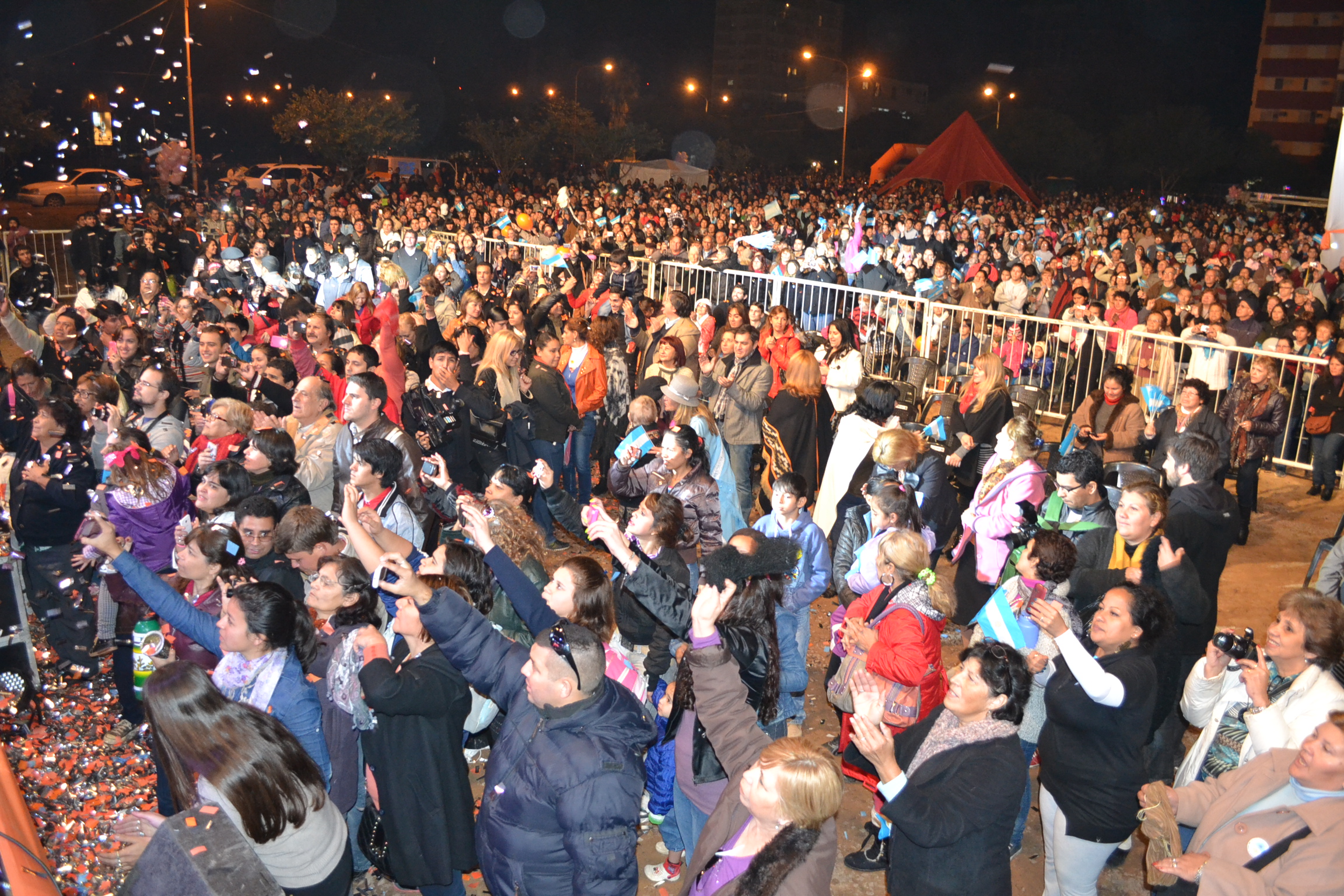 Tras la postergación del domingo por motivos climáticos; ni el día laborable, ni las bajas temperaturas impidieron que miles de personas de toda la provincia se acercaran a disfrutar del festival en conmemoración del 204° Aniversario de la Revolución de Mayo. Las familias se hicieron presentes en el parque Laguna Arguello para disfrutar una tarde-noche con el fervor de los colores patrios, a puro canto y baile.