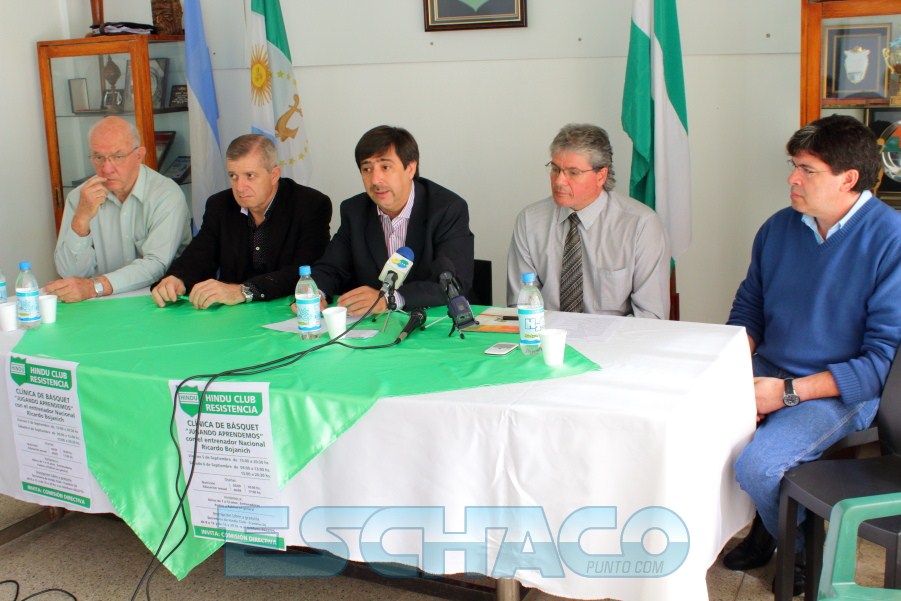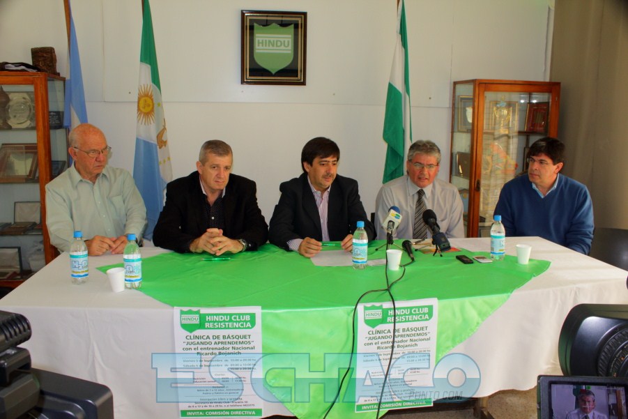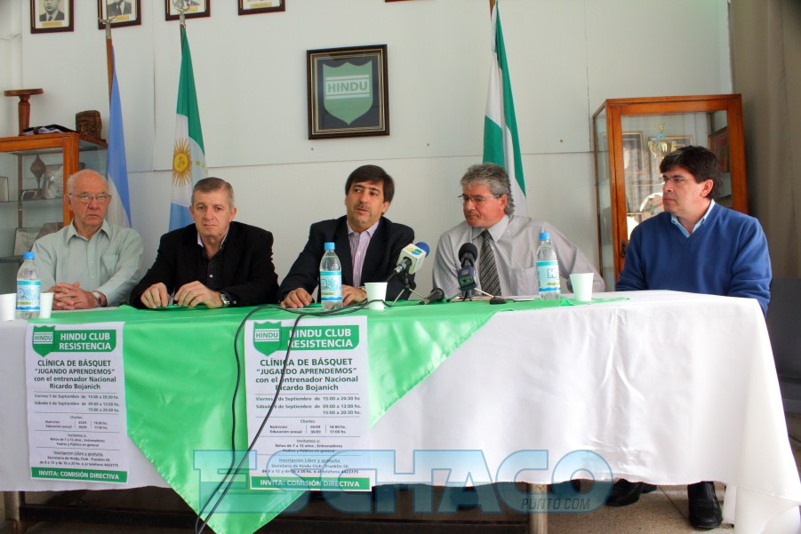 El presidente de Hindú Club, Gustavo Martínez junto a miembros de la Comisión Directiva y al entrenador Luís Cequeira anunciaron la realización de una clínica de básquetbol “Jugando Aprendemos” que contará con la participación del entrenador nacional Ricardo Bojanich y que se llevará a cabo este viernes de 15 hs a 20.30 hs, y el sábado de 9 hs a 13 hs y de 15 hs a 20.30 hs, en la sede del Club en Franklin 50.