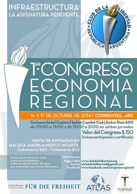 Como parte del calendario de actividades de la FUNDACIÓN CLUB DE LA LIBERTAD en el mes de octubre se realizará el evento más importante del año, en este caso el PRIMER CONGRESO DE ECONOMÍA REGIONAL que convocará a más de 30 expositores que durante ambas jornadas presentarán sus aportes y conocimientos para provecho de todo el norte argentino.