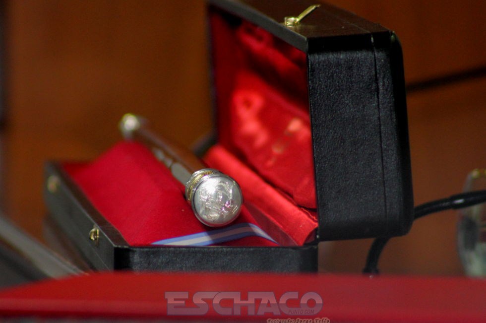 En la oportunidad, y por primera vez en la historia de la provincia, el gobernador recibió de manos del presidente de la Legislatura el Bastón de Mando instituido por ley 7729 como atributo de autoridad y mando del Poder Ejecutivo Provincial.