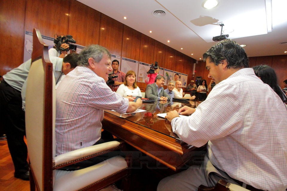 El gobernador Domingo Peppo se reunió esta mañana con el intendente de Resistencia Jorge Capitanich, en donde firmaron una serie de convenios de cooperación y asistencia financiera entre el gobierno de la provincia del Chaco y la municipalidad capitalina. De esta manera, conjugan acciones para optimizar las políticas públicas en beneficio de la comunidad.