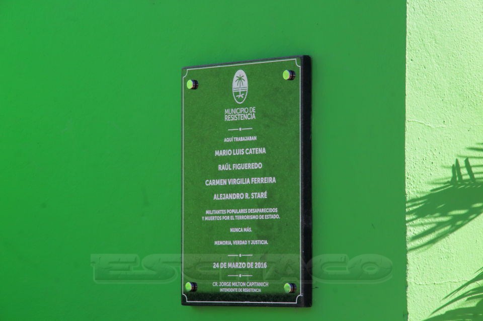 El intendente Capitanich destacó que esta fecha tiene una connotación especial, porque durante muchos años la Municipalidad de Resistencia ha permanecido ausente en la reivindicación de esta fecha emblemática. “Hoy estamos haciendo el reconocimiento a los trabajadores municipales desaparecidos en la última dictadura militar: Raúl Figueredo, Carmen Virgilia Ferreira, Alejandro Staré y Mario Luis Catena”, dijo.