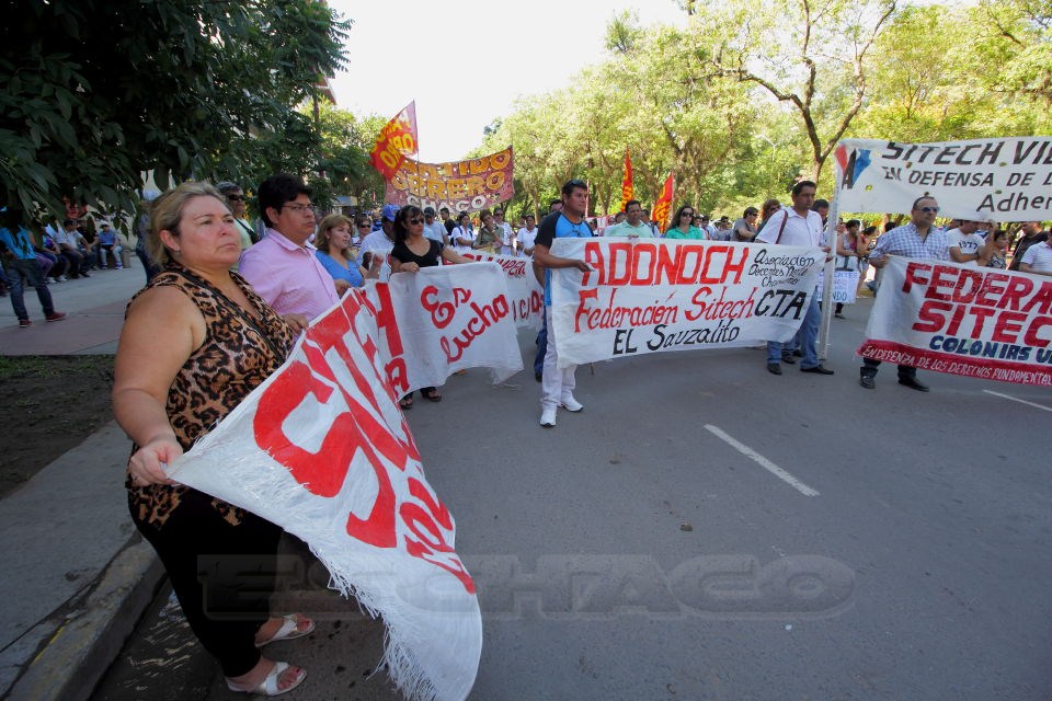 En el Chaco adhirieron a la medida Sitech Federación, que también se movilizó, Atech, Ctera, en concordancia con los docentes de Tierra del Fuego; Misiones; Santiago del Estero; Santa Cruz; Mendoza; Formosa y Jujuy, provincias que se hallan en conflicto.