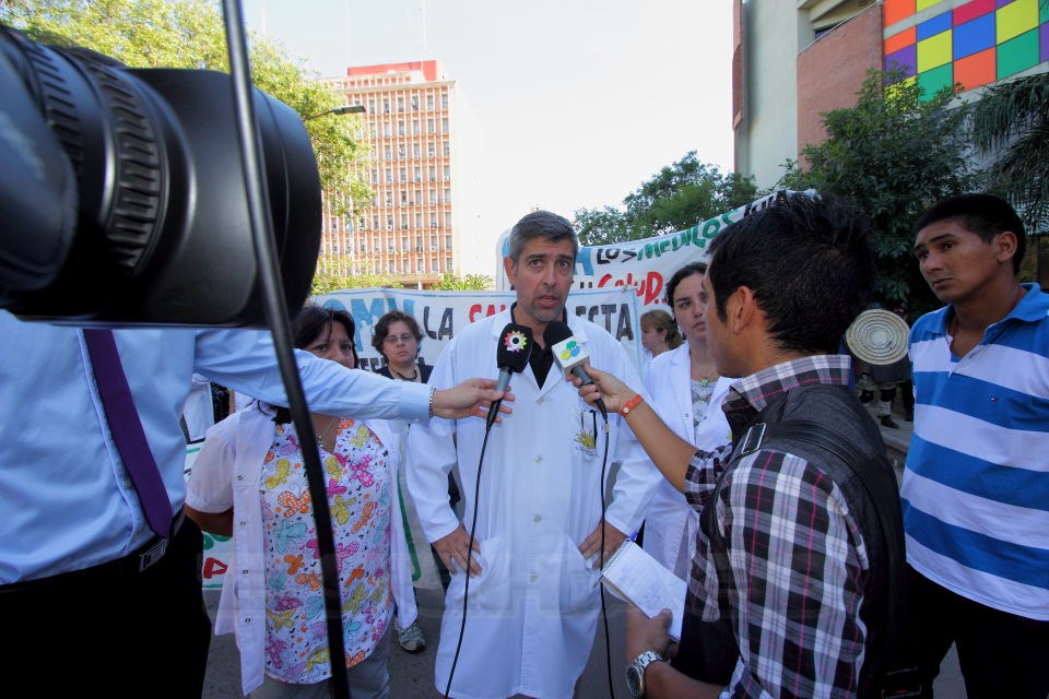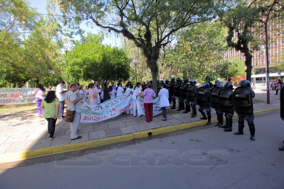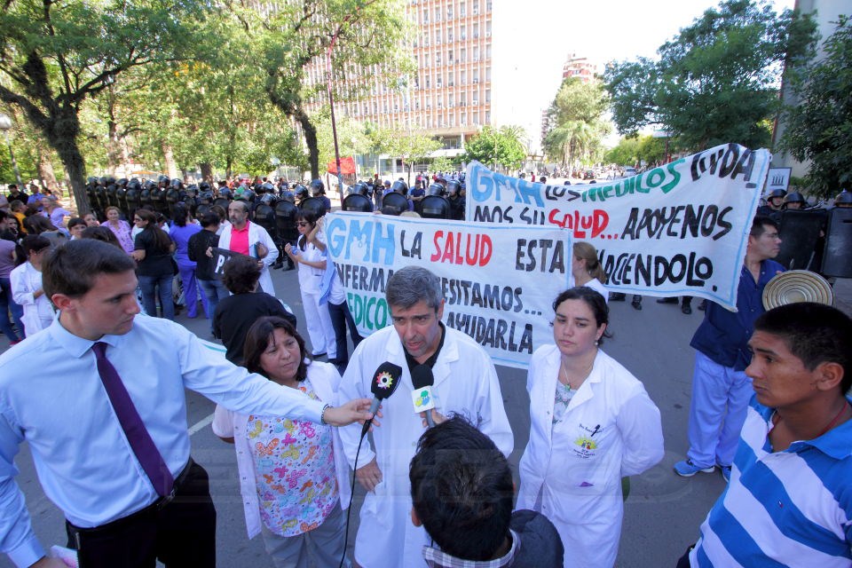 En diálogo con RADIO CIUDAD, la doctora Azucena Gallard, de la Gremial Médica Hospitalaria, explicó que esa asociación gremial puso en marcha una medida de fuerza y se movilizó este lunes primero hacia la Legislatura, donde entregaron un petitorio a legisladores de la oposición, para luego marchar hacia la Casa de Gobierno, pero frente a la Casa de las Culturas un fuerte despliegue de policías impidió la marcha hacia la sede del Ejecutivo.