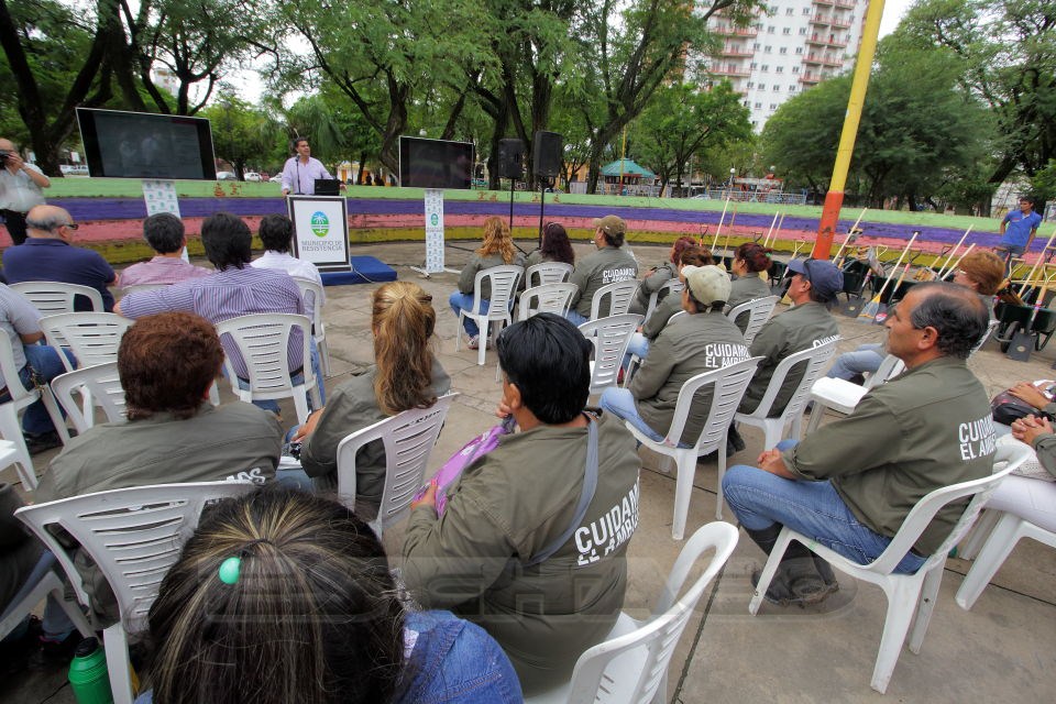 El intendente Jorge Capitanich expuso este jueves el plan de remodelación y refuncionalización de la plaza España y presentó al equipo de guardaparques urbanos que trabajará en el cuidado y mantenimiento de los espacios verdes de la ciudad.