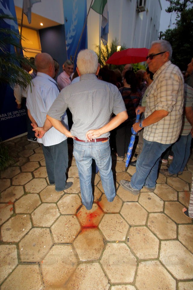 El propio Sampayo responsabilizó por la agresión a “Tatú” Suárez, como jefe de la seguridad de la Cámara de Diputados, y a la titular del cuerpo legislativo, Élida Cuesta, calificando de “artera y cobarde” el ataque de las fuerzas de la seguridad de la Legislatura, quienes incluso contaron como apoyo con efectivos policiales quienes de manera imprudente dispararon postas de goma contra la multitud, dejando como saldo una veintena de heridos por estos proyectiles, además de lanzar de manera indiscriminada gases lacrimógenos sobre los manifestantes.