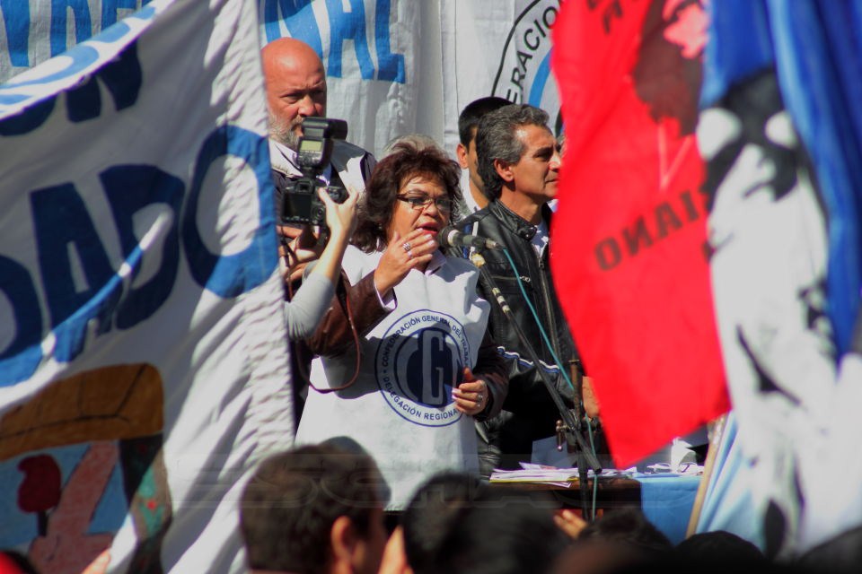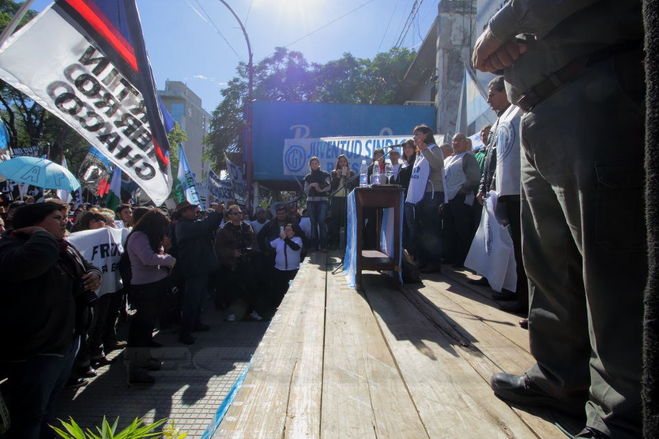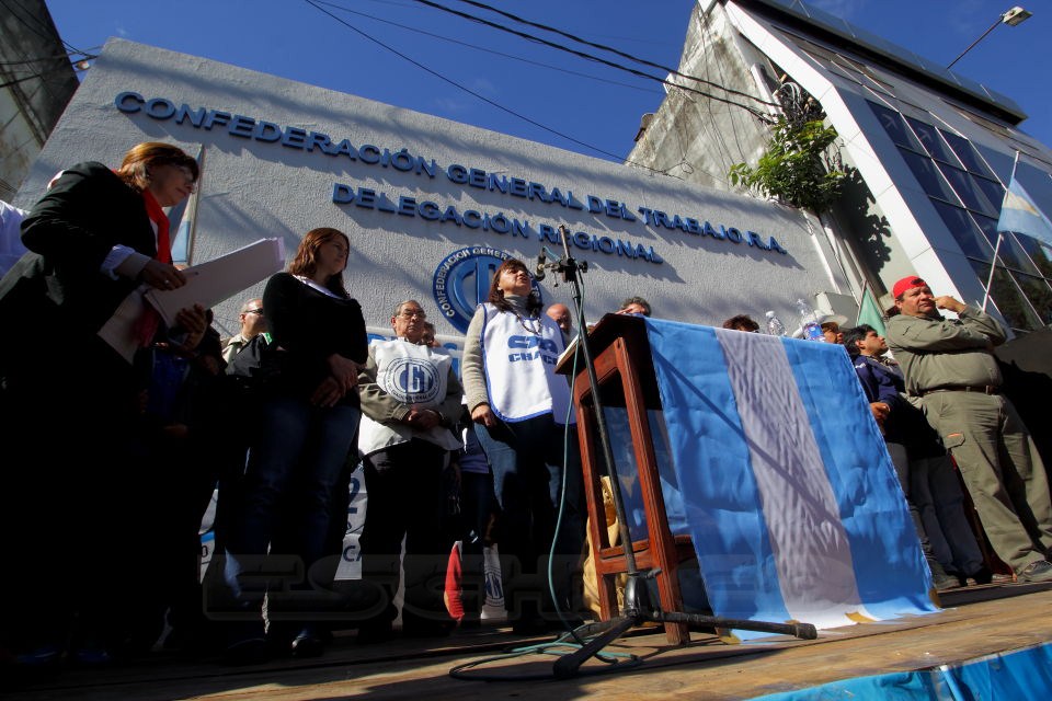 El multitudinario acto realizado frente a la sede de la CGT contó con la participación de dirigentes y militantes de la CTA, Utre CTERA, el Frente Grande, Movimiento Evita, La Cámpora. el MTD Emerenciano, Colectivo Nacional, CANPO, Descamisados Chaco, entre otras.