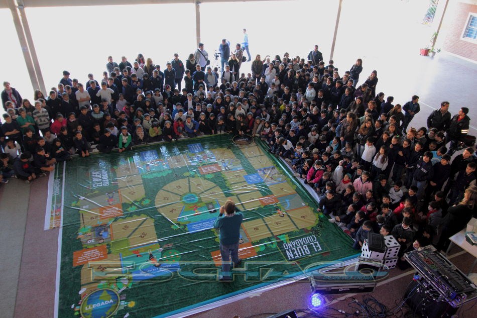 En cuanto a la importancia de que los niños lleven a su casa y familiares el mensaje del cuidado del medio ambiente, Martínez comentó que es fundamental. “Si los niños llevan a la casa el mensaje, esto permite ir generando un debate dentro de la familia. Nos pareció muy importante que el mismo tablero gigante con el que van a jugar en esta jornada, junto a la música de la banda Tierra Verde, lo puedan llevar a la casa y lo puedan jugar con el resto de la familia, con los adultos de la familia y de esta manera puedan ir debatiendo respecto a las consignas”. De esta manera Martínez se refería al obsequio de un juego que se entrega a cada alumno para que pueda llevarlo a su hogar y compartir con la familia.