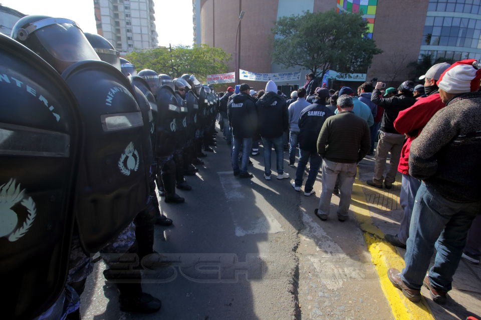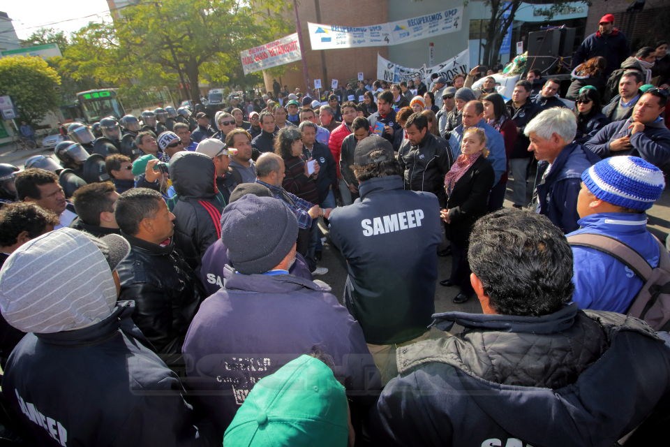 Los operarios de Sameep realizaron una protesta el último martes en reclamo a la actualización salarial y mejoras de las condiciones de trabajo y en la en la cual presentaron un petitorio dirigido al gobernador, Domingo Peppo, para que intervenga en la situación.