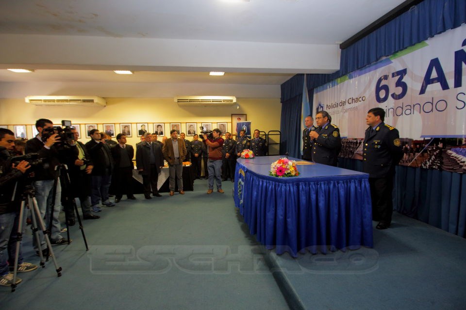El jefe de Policía, Comisario General Ariel Alejandro Acuña recibió a los periodistas en el “Salón Azul Comisario Inspector Prisciliano Sotelo” de la Escuela de Policía. Se organizó un desayuno para los invitados y una entrega de obsequios.
