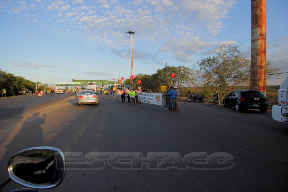 Desde el puesto de control caminero ubicado en la zona del Peaje interprovincial Chaco-Corriemtes repartieron volantes y explicaron sobre el "No a la tercerización de los servicios públicos".