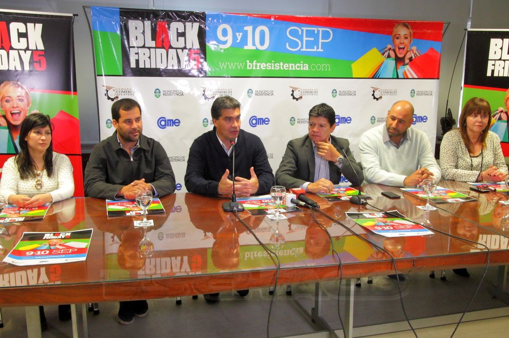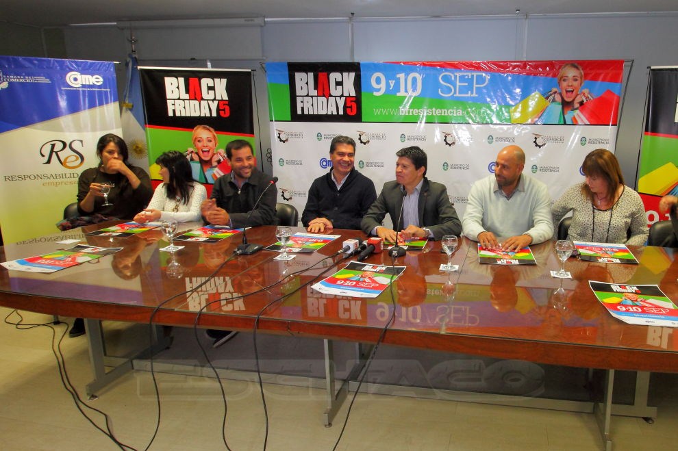 Directivos de la Cámara de Comercio de Resistencia, junto a autoridades del Municipio, presentaron en conferencia de prensa este viernes 19, la nueva edición del Black Friday en Resistencia, que se llevará a cabo el 9 y 10 de septiembre y pueden participar todos comercios interesados.