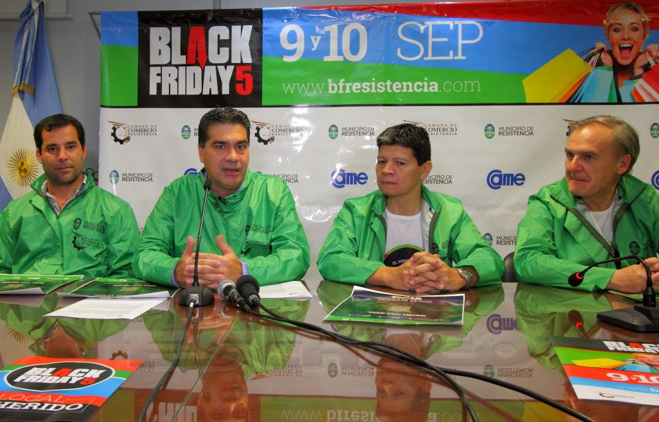Con la participación récord de más de 3.000 comercios adheridos a la iniciativa, este viernes y sábado se realiza en Resistencia la quinta edición de Black Friday, con descuentos de hasta más del 50 por ciento en algunos rubros. En ese marco, el intendente Jorge Capitanich, encabezó la presentación del evento, al tiempo que adelantó que la edición 2017 tendrá un nuevo formato de una semana de duración y bajo la denominación “Semana Verde” con enormes novedades, incluyendo rubros gastronómicos, hotelerías y de esparcimiento, entre otros.