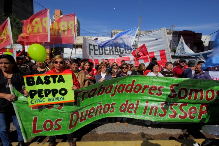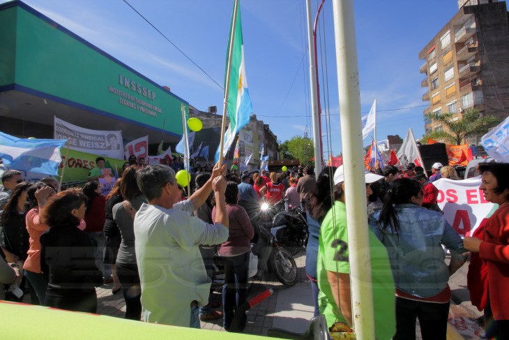 Gremios Estatales como UPCP, Docentes, CTA Autónoma, Multisectorial y Movimientos Sociales volvieron este miércoles a movilizarse en defensa del INSSSEP, en contra de la política de ajuste y en reclamo de las reivindicaciones de cada uno de los sectores.