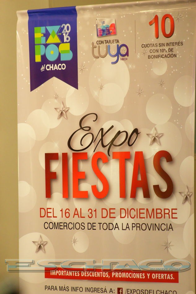 Expo Fiestas dispone de una promoción especial de 10 cuotas sin interés con el 10 % de descuento a través de Tarjeta Tuya, desde el viernes 16 hasta el sábado 31 de diciembre. El evento se enmarca en el programa Expos del Chaco, y tiene la finalidad de potenciar acciones comerciales de la provincia, de acuerdo a su rubro o actividad, generando un incremento de ventas y promocionando el comercio local. A su vez, Expos del Chaco engloba diferentes exposiciones temáticas.