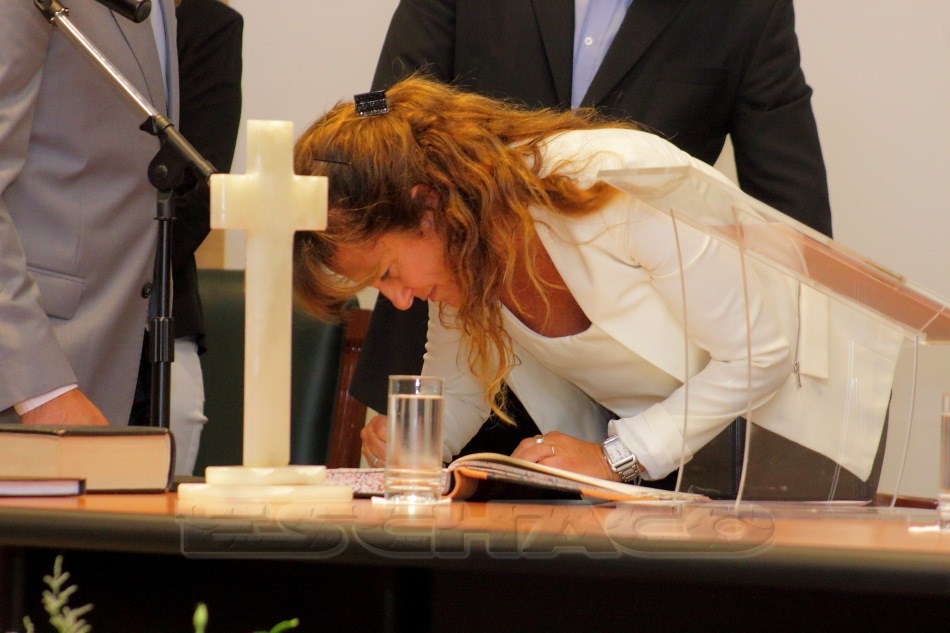Al comenzar su discurso la presidenta Grillo agradeció a los presentes que voluntariamente acompañaron, a los integrantes Poder Judicial, autoridades en general, organizaciones sociales y ciudadanía. “Agradezco a Dios, fuente de toda verdad y justicia”, señaló.