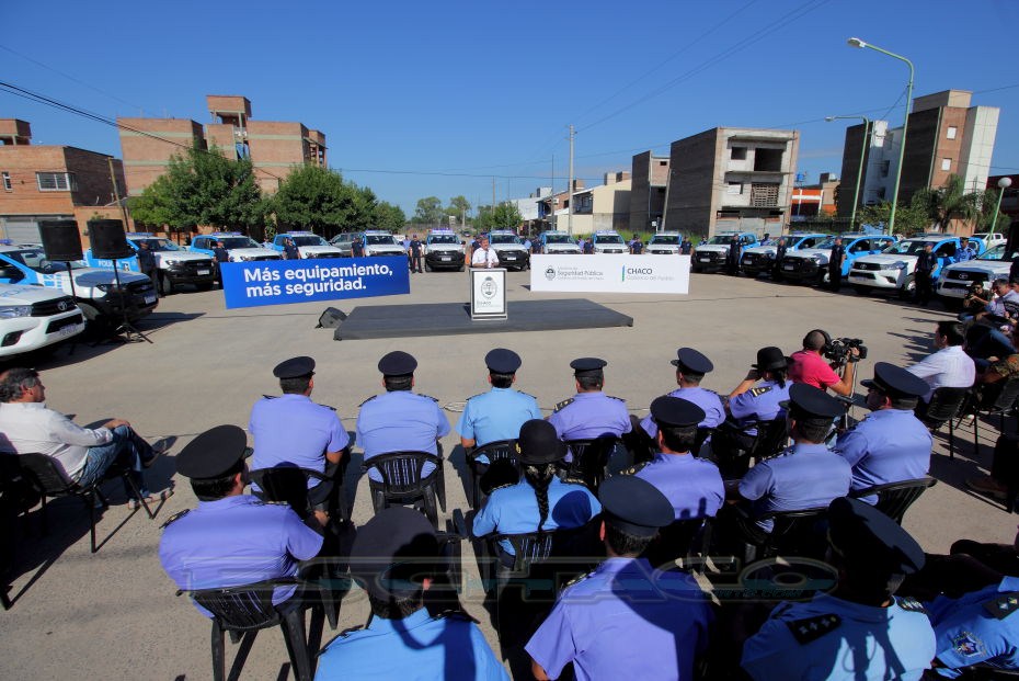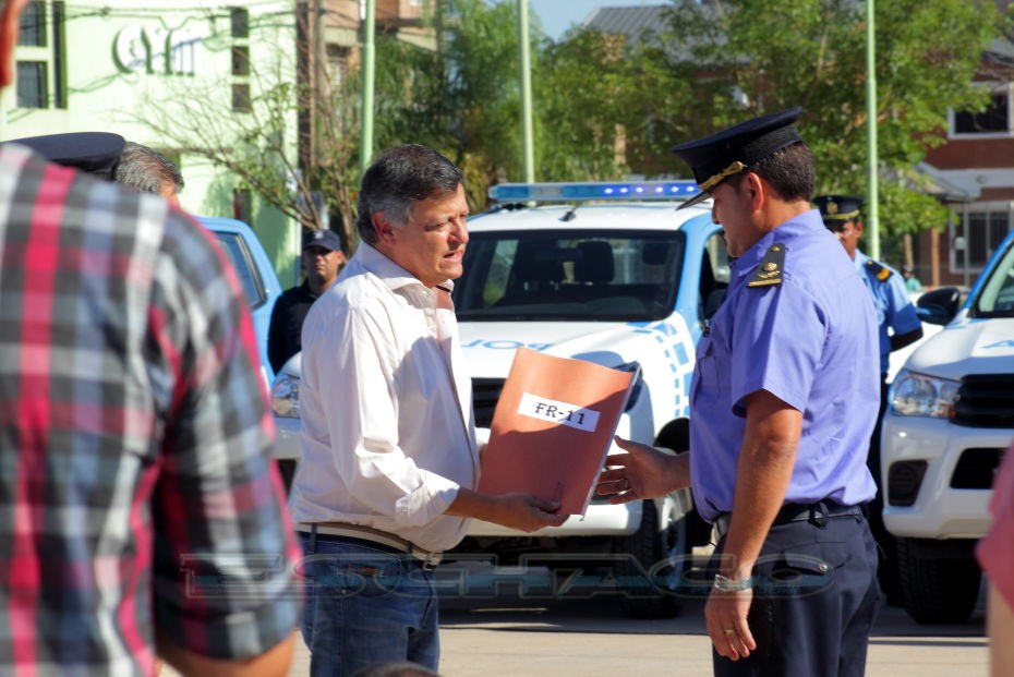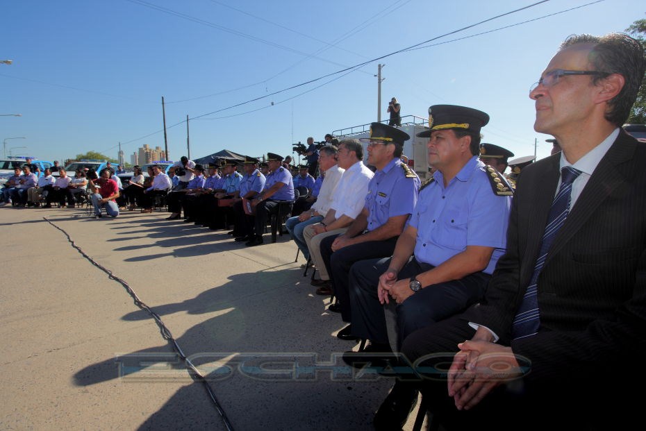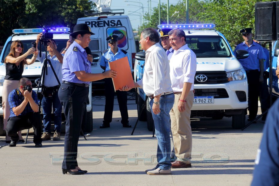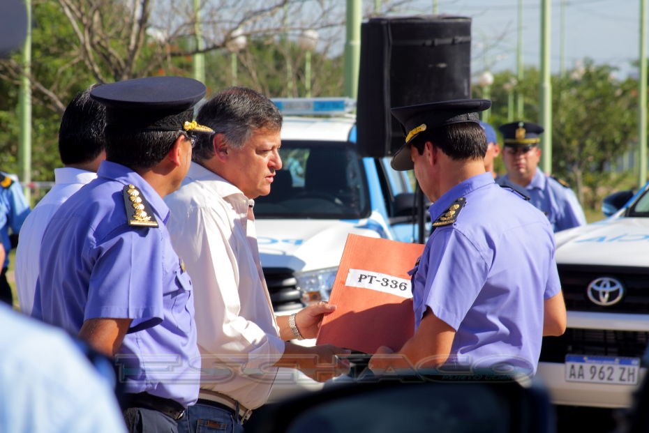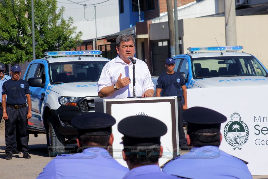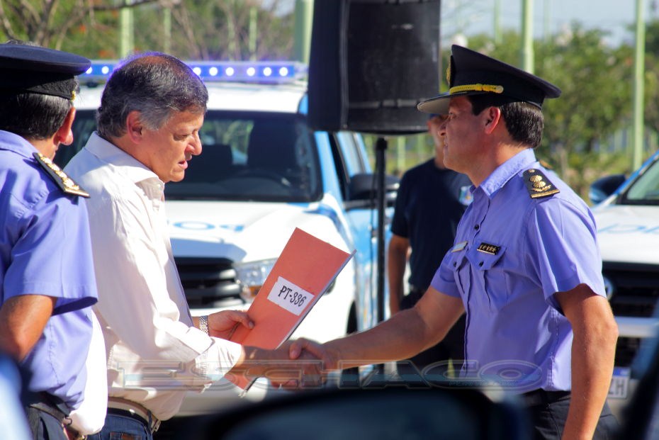 El ministro de Seguridad Martín Nievas acompañó esta mañana al gobernador Domingo Peppo en la presentación de 20 nuevos patrulleros que circularán por los barrios de Resistencia, Vilelas, Barranqueras, Fontana, e Isla del Cerrito.