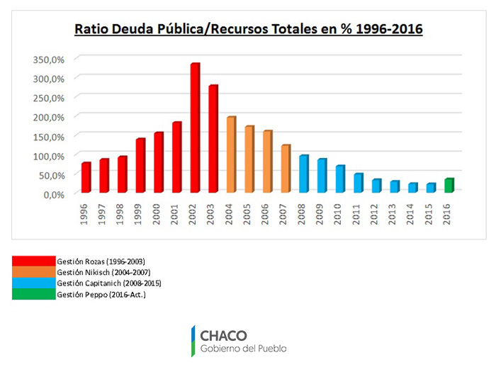 En este sentido, añadió que así como “el nivel de endeudamiento en la gestión del gobernador Peppo aumenta respecto a gestiones anteriores” también queda demostrada “la capacidad de repago”. Aseguró que al comparar la deuda pública con los recursos totales “se aprecia que justamente este ratio de solvencia se redujo considerablemente”. (CUADRO 1)