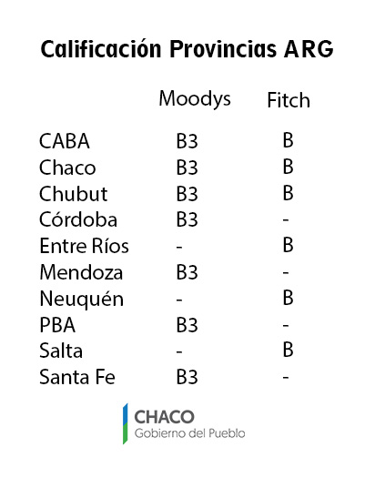 Asimismo, puntualizó en las apreciaciones de la calificadora de riesgo Moodys Investors Service, que en marzo de este año “subió la calificación de la deuda en moneda extranjera de Chaco y la posicionó en igual nivel que jurisdicciones como Buenos Aires, Córdoba, Mendoza, Santa Fe y la Ciudad Autónoma de Buenos Aires”; y de FITCH (la entidad a nivel internacional de FIX) que mantiene el mismo nivel para subsoberanos argentinos desde 2016. (CUADRO 2)