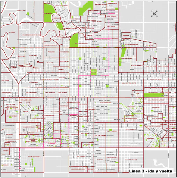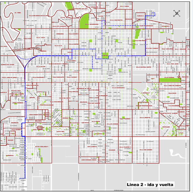 La línea 2 tendrá como recorrido alternativo su salida desde el barrio Carpincho Macho, tomando Tatú Carreta y ruta 11. Luego irá por avenida 25 de Mayo hasta calle 2 y doblará hasta la Santa Fe o Ente Ríos. Luego tomará por Remedios de Escalada y proseguirá de manera normal. El regreso de esta línea será normal. En caso de que se registren lluvias extremas, el servicio no ingresará a los barrios Barberán, Italia y Los Pinos.