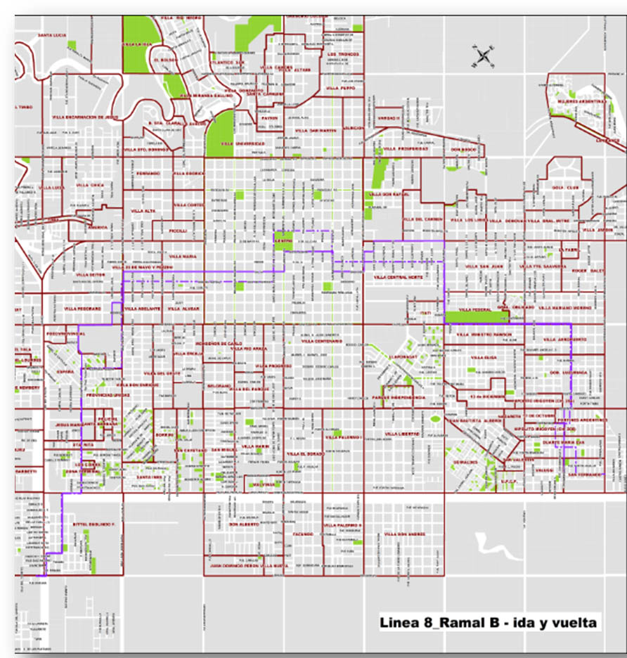 La línea 8, en caso de que se inunde la avenida Mac Lean, el recorrido se desviará a calle Bertaca, calle 13, avenida Alvear hasta calle 9, para luego tomar Jujuy, Mac Lean y allí hasta Salta. Luego continuará normal hasta Donovan. El recorrido seguirá por avenida Las Heras, luego Castelli y con el recorrido habitual. Ante anegamiento de la calle 25, se desviará hacia calle 21 y Edison. En caso de anegamiento de avenida Chaco y Ameghino, el servicio continuará por Castelli hasta Las Heras y de ahí de manera habitual.