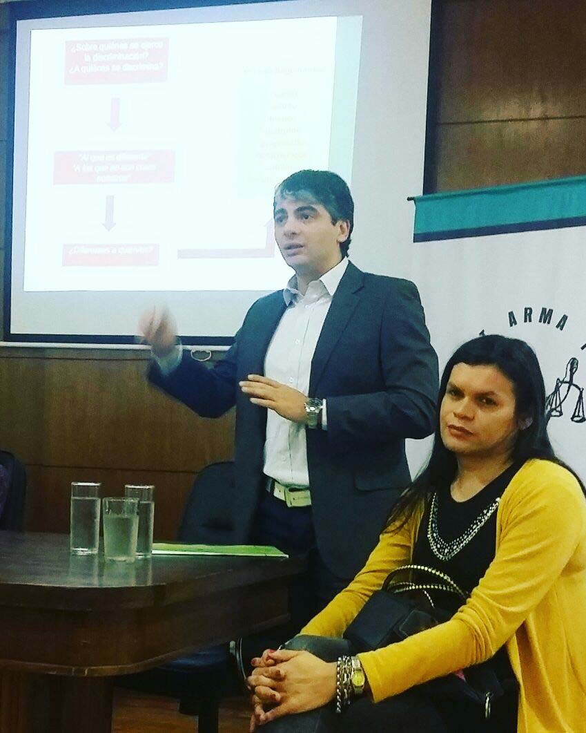 El curso estuvo a cargo del doctor Javier Dumrauf, delegado del INADI en el Chaco, de la doctora Clara Cantero, asesora legal de la delegación local del organismo nacional, y de Mía Colussi, de UCR Diversidad.