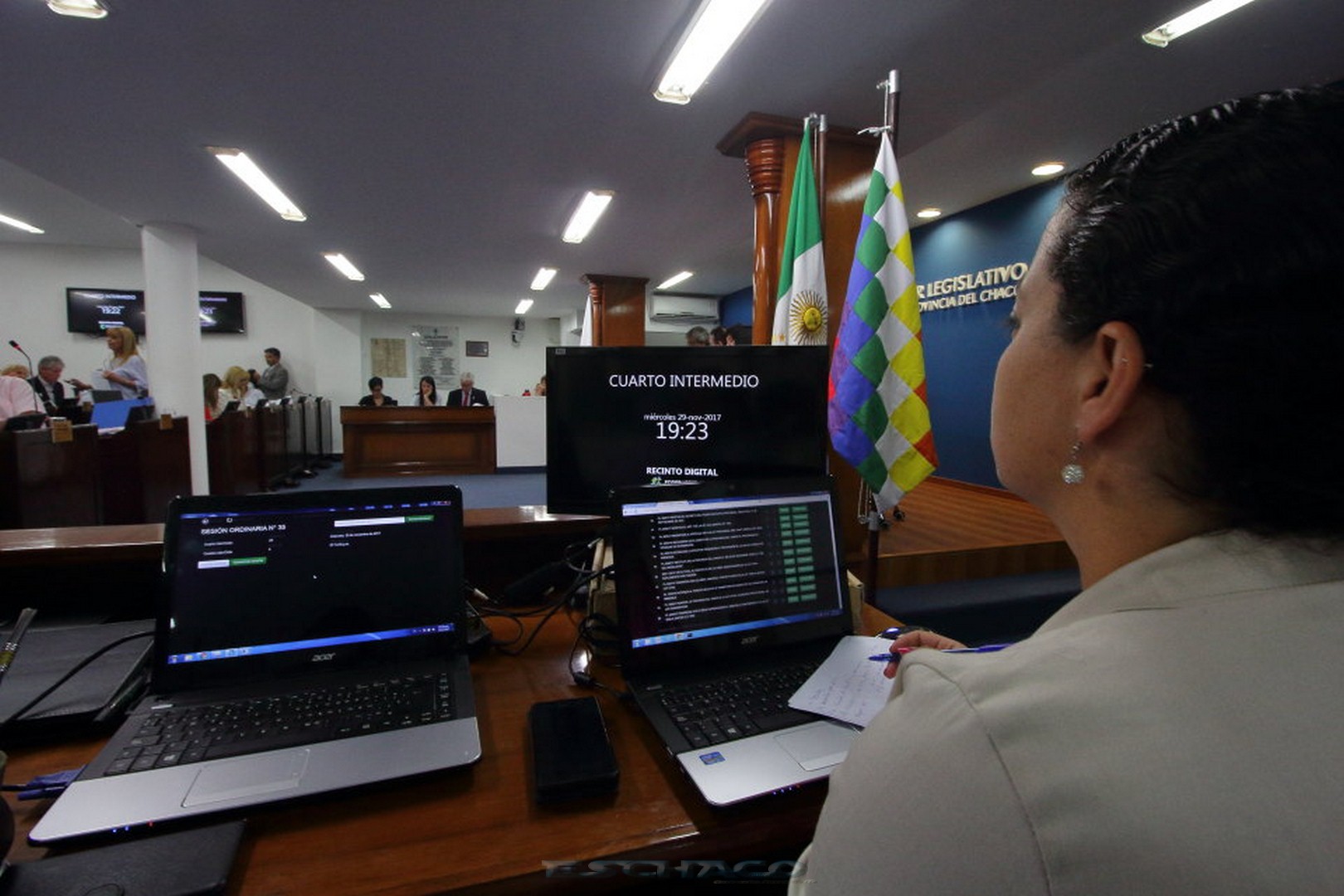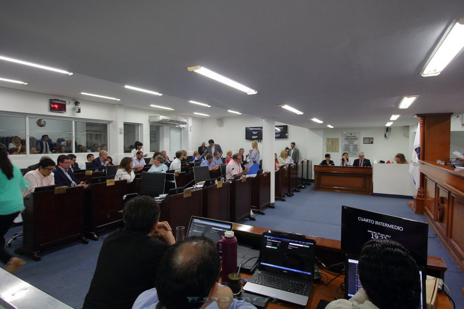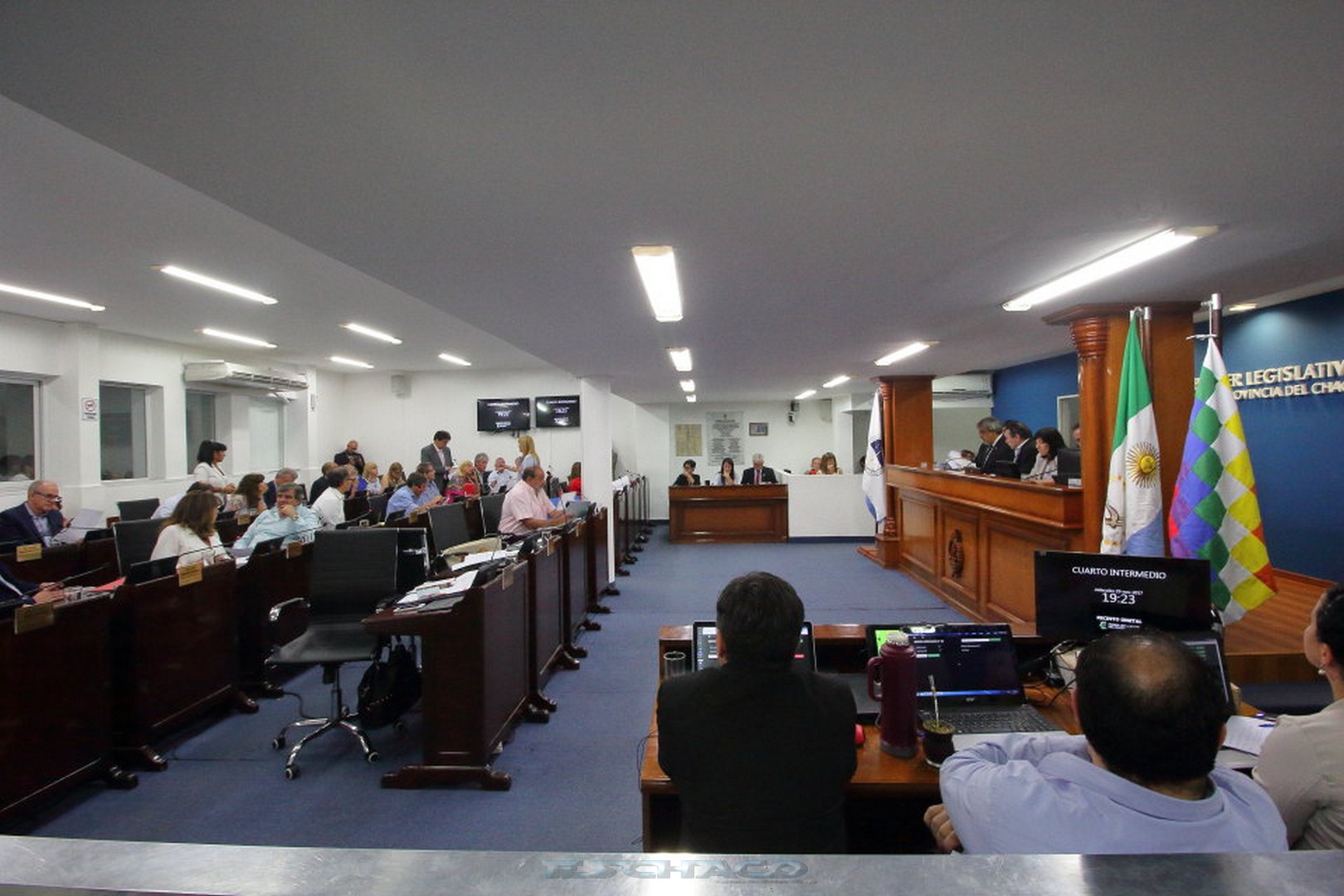 Siendo las 20.45 horas el diputado justicialista Ricardo Sánchez, tomó la palabra y mocionó “pasar la sesión a un cuarto intermedio, hasta este jueves a las 14 horas” puesta a consideración del Cuerpo recibió el acompañamiento de 17 legisladores, sin el respaldo del Interbloque Cambiemos, por lo que la sesión se reanudará .