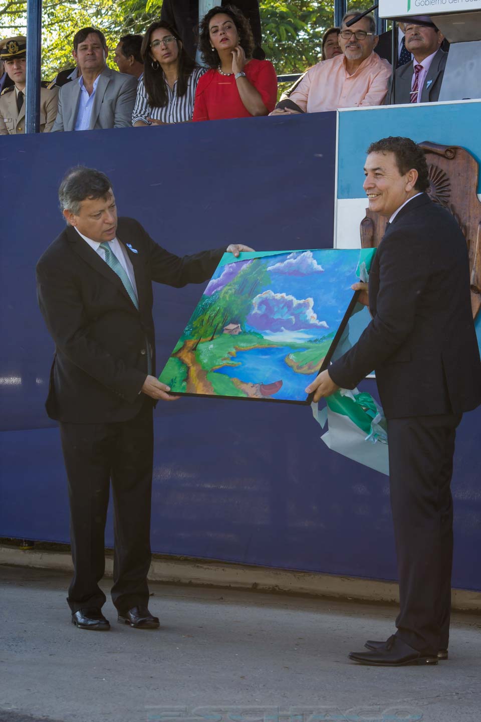 Estuvieron presentes también los ministros de Infraestructura Fabián Echezarreta, de Desarrollo Social Roberto Acosta, de Gobierno, Justicia y Relación con la Comunidad Martín Nievas, el presidente de Lotería Chaqueña Oscar Brugnoli; la secretaria de Municipios y Ciudades Beatriz Bogado, el vocal de Lotería Chaqueña Edilberto Nuñez y los intendentes de Fontana Antonio Rodas y de Basail Ignacio Rostan.